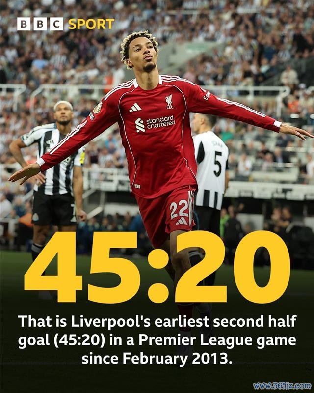 这亦然是利物浦自2013年2月以来,在英超比赛中打进的最快的下半场进球。