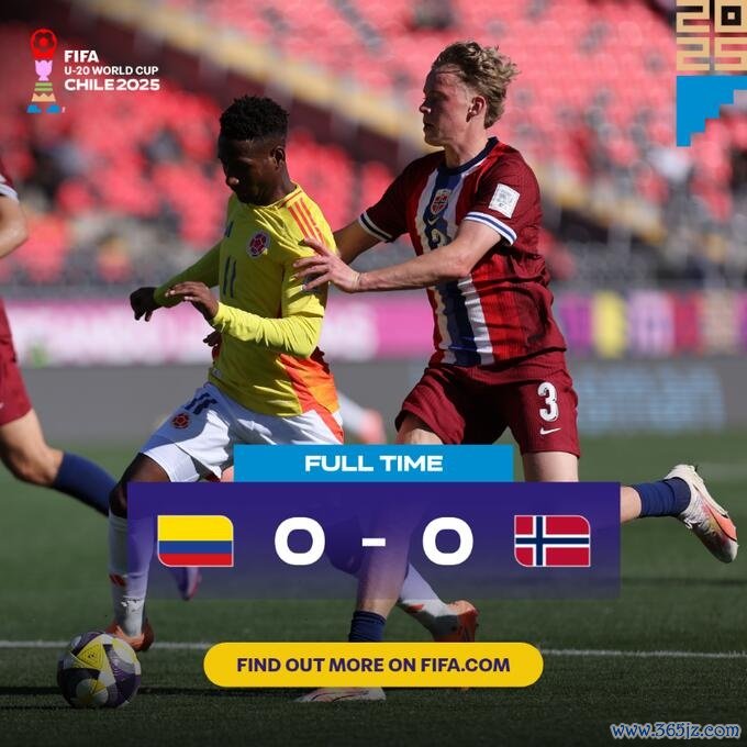 世青赛:哥伦比亚U20以0-0战平挪威U20,单队18次射门未得到进球