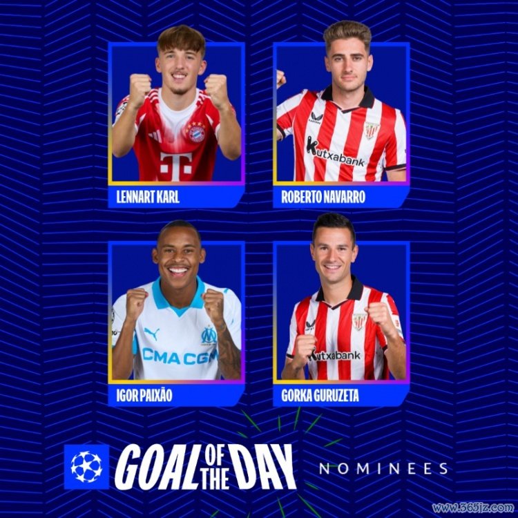 10月23日讯 本日多场欧冠联赛第三轮比赛战罢,欧冠官方列出了本日最好进球候选名单。