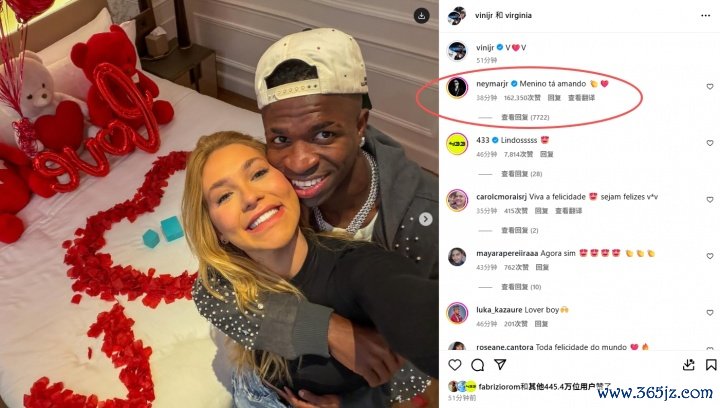 维尼修斯和女友秀恩爱❤️内马尔评述:这个男孩超爱她👏❤️