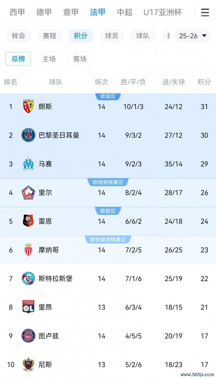 朗斯也在14轮联赛事后以10胜1平3负,积31分越过巴黎,登顶法甲联赛积分榜首。数据统计露馅,这亦然他们自2004年以来初度登顶法甲积分榜首。