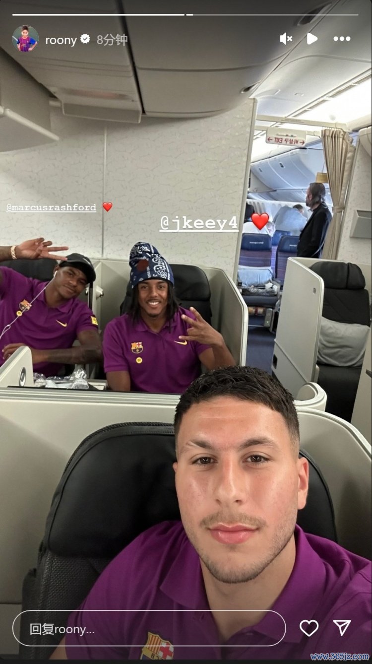 巴德吉随巴萨赶赴日本,开启亚洲行,他在酬酢媒体上晒出飞机内的像片,坐在他死后的是孔德和拉什福德。