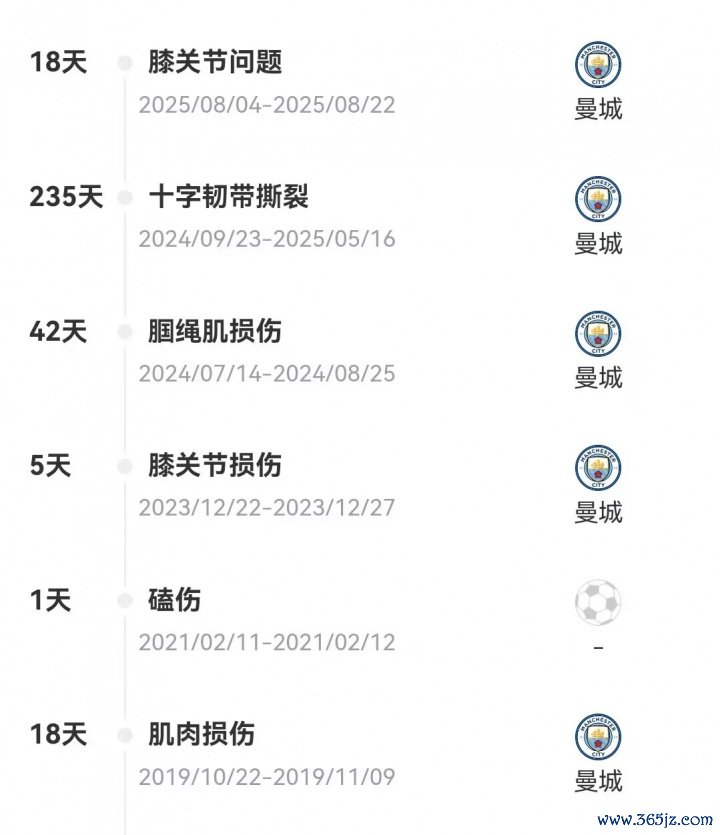 2024/25赛季初,罗德里碰到膝盖前十字韧带扯破(ACL)的重伤,休战235天。以金球先生的受伤为退换点,曼城褪去了“七年六冠”时间的光环,提前插足了重建期。