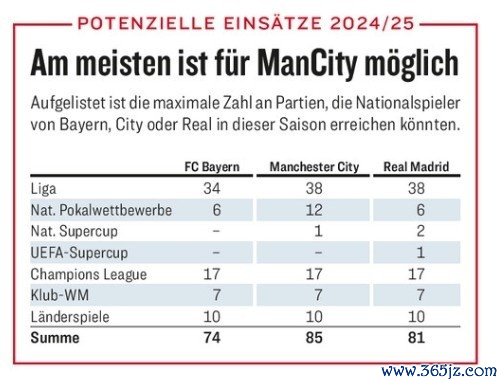 上赛季,曼城、皇马和拜仁都莫得达到极限场次,但超负荷运转也曾成为了朱门的日常。