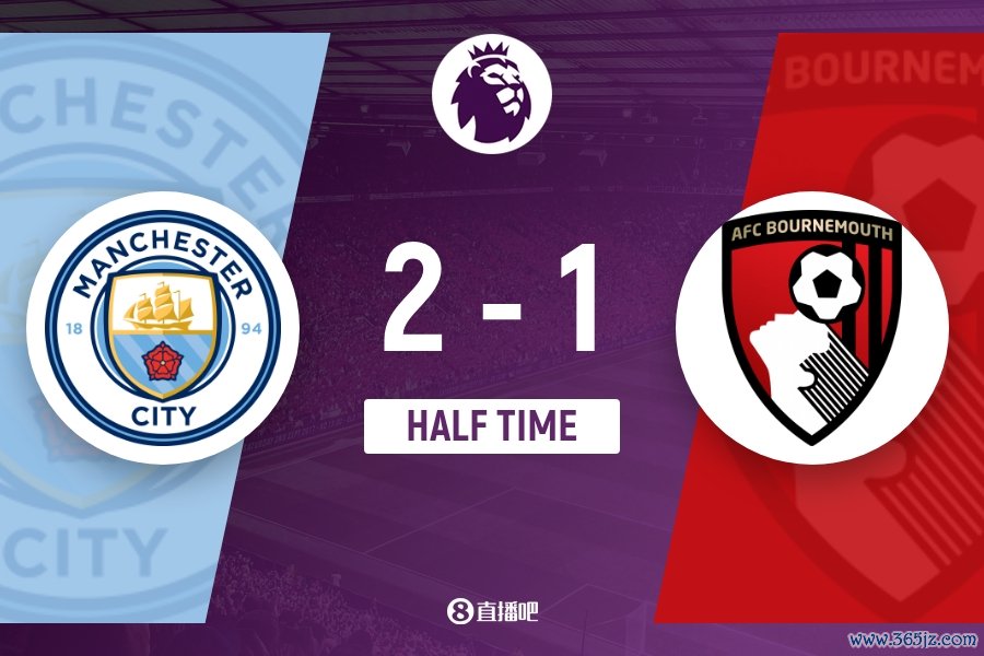 半场甘休,曼城2-1伯恩茅斯。