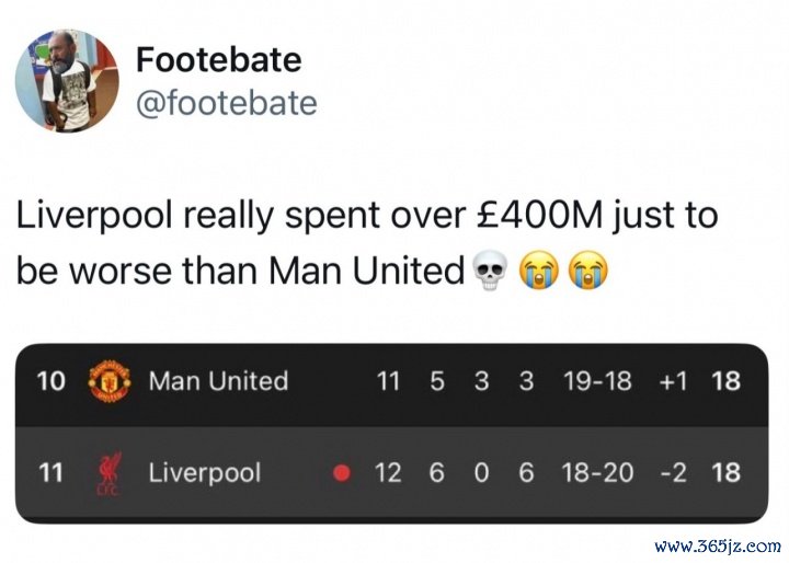 当天趣图:利物浦夏窗四亿妄为,如今拿下东部第一,很合理吧