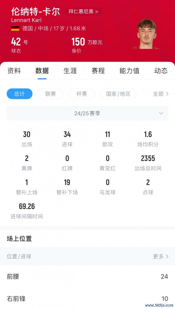 上赛季,他为拜仁后生队所有这个词出场30次,孝顺34球11助攻。