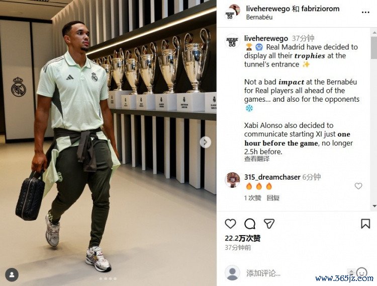 据名记罗马诺报说念,皇马决定在球员通说念进口处展示扫数奖杯,从而为在伯纳乌的比赛增添威望。关于皇马球员和敌手球员而言,这种视觉冲击力无疑会产生不小的影响。