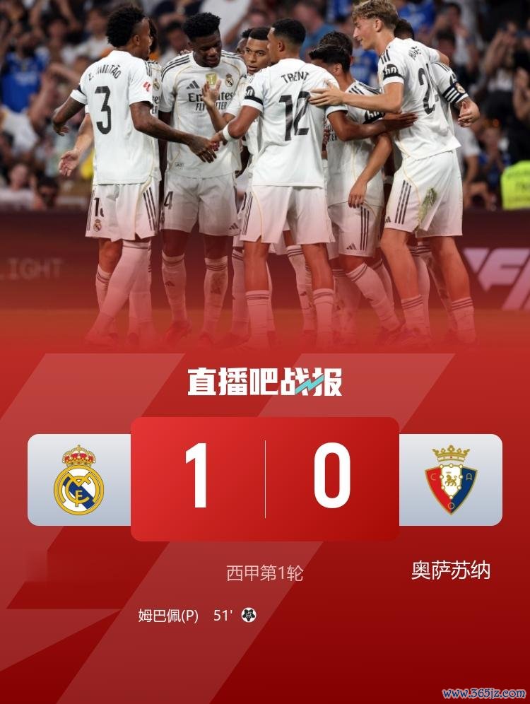 西甲第1轮,凭借姆巴佩的点球,皇马1-0驯顺奥萨苏纳,得到开门红。