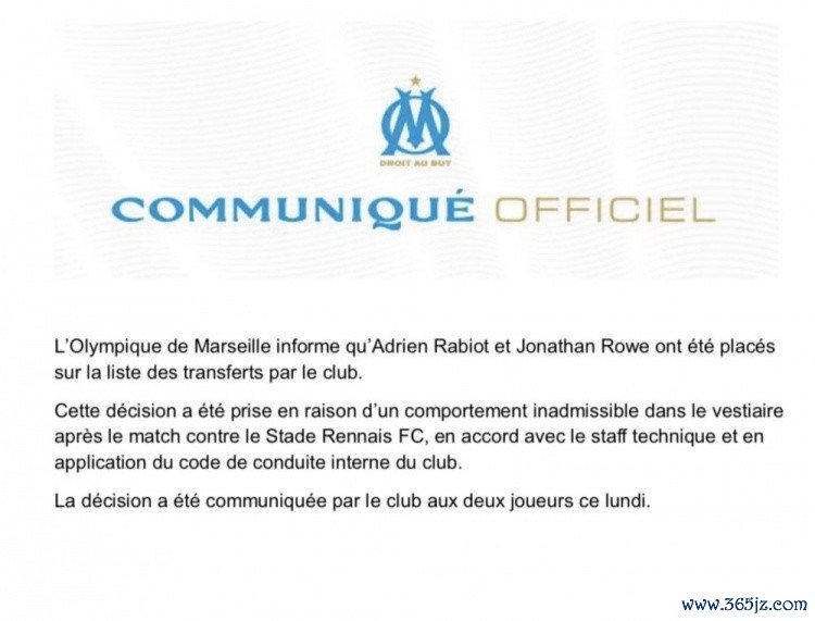 马赛官方晓谕,球队仍是将拉比奥特和洛维列入出售名单。