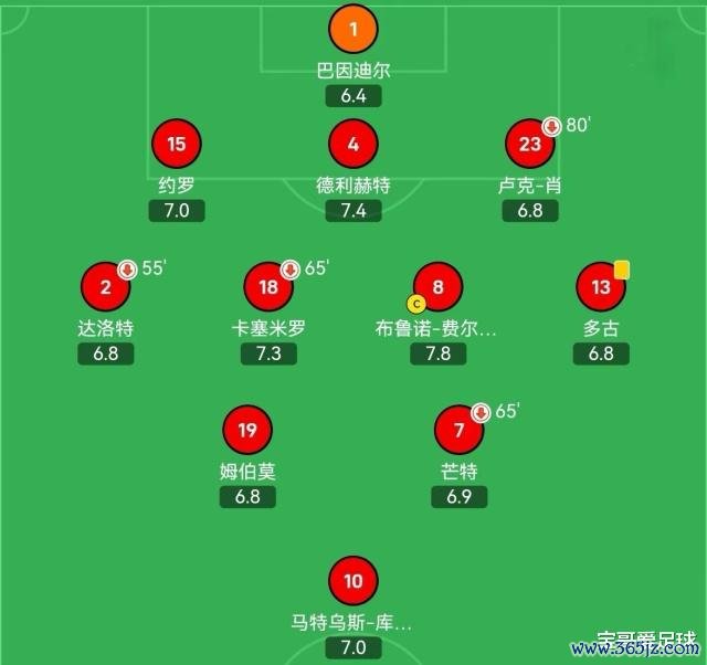 曼联其他首发球员中,双后腰B费、卡塞米罗和中后卫德利赫特线路最为出色,非常是德利赫特本场比赛完全冻结了阿森纳中锋哲凯赖什,让后者在第60分钟就被替换下场。除此之外,另外两名中后卫约罗和卢克肖,以及两名边翼卫多古和达洛特的线路也基本令东谈主适意,芒特的线路亦然可圈可点,首发11东谈主中线路最差的就是门将巴因迪尔,他亦然曼联本场比赛得分最低的首发球员。