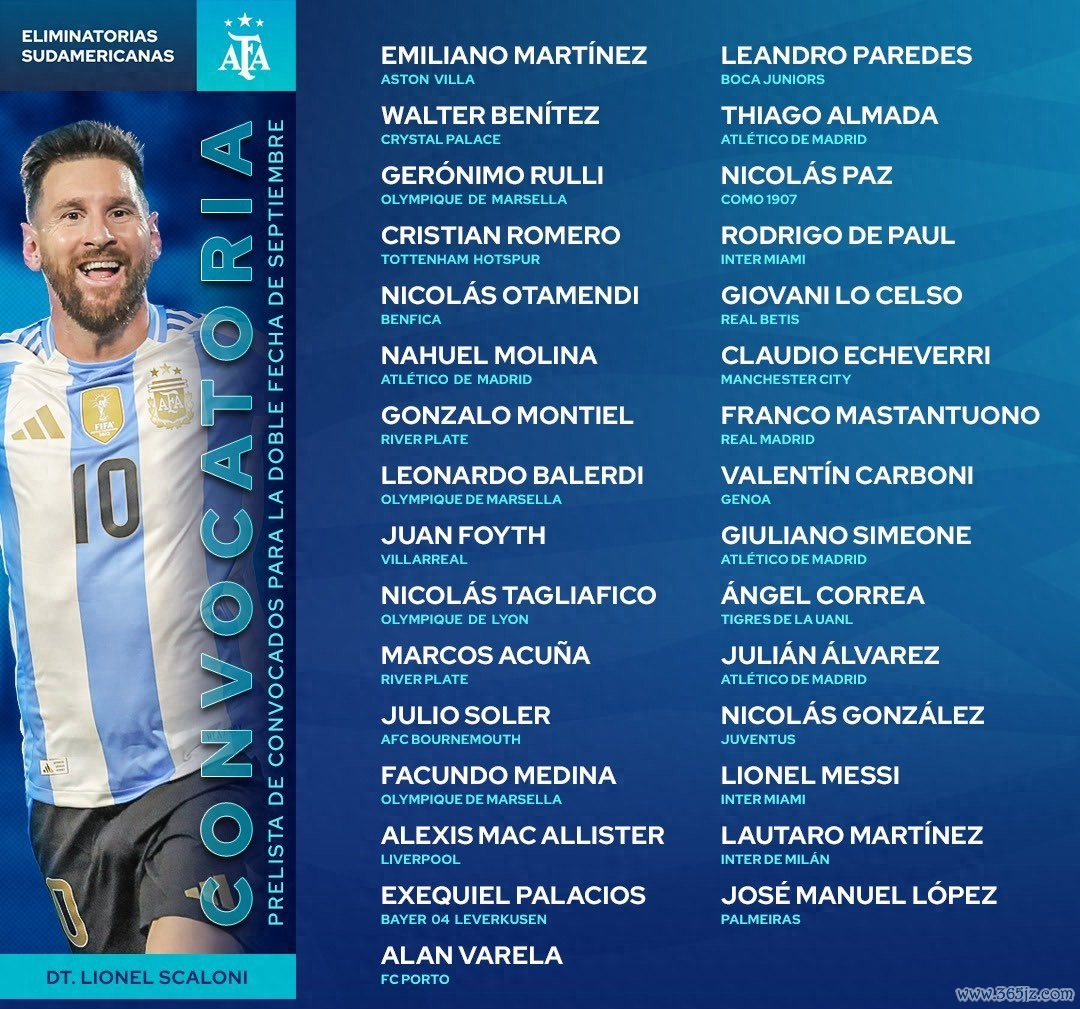 阿根廷足协(AFA)于18日公布了备战9月举行的2026年宇宙杯南好意思区预选赛的31东谈主大名单。这次名单由主西宾利昂内尔·斯卡洛尼敲定,象征着“潘帕斯雄鹰”细致插足本届南好意思区预选赛的收官阶段。