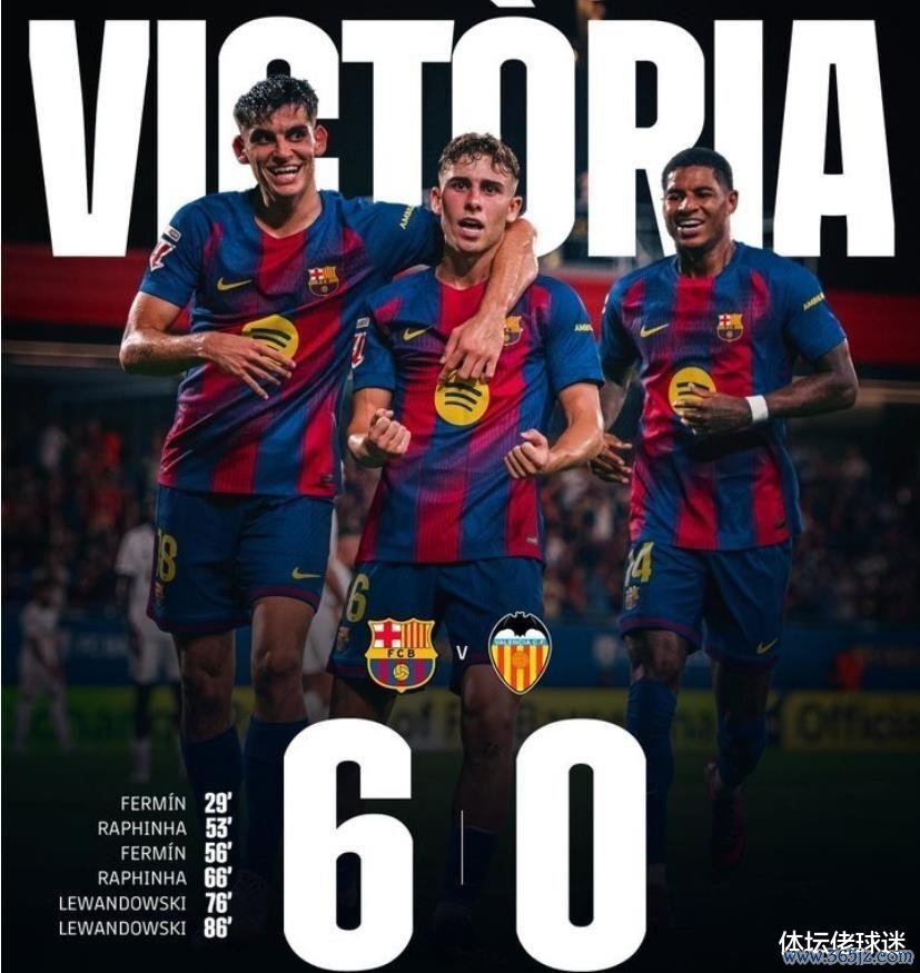 莱万人老心不老,费尔明改日可期,拉菲尼亚执续输出,一场属于替补、属于故我伙和年青东说念主、也属于记载的夜晚。巴萨用一场6比0宣告球队如今依旧强势,而瓦伦西亚队当今独一思要作念的事,即是祷告短时代内不思再遭遇这支红蓝军团!!!