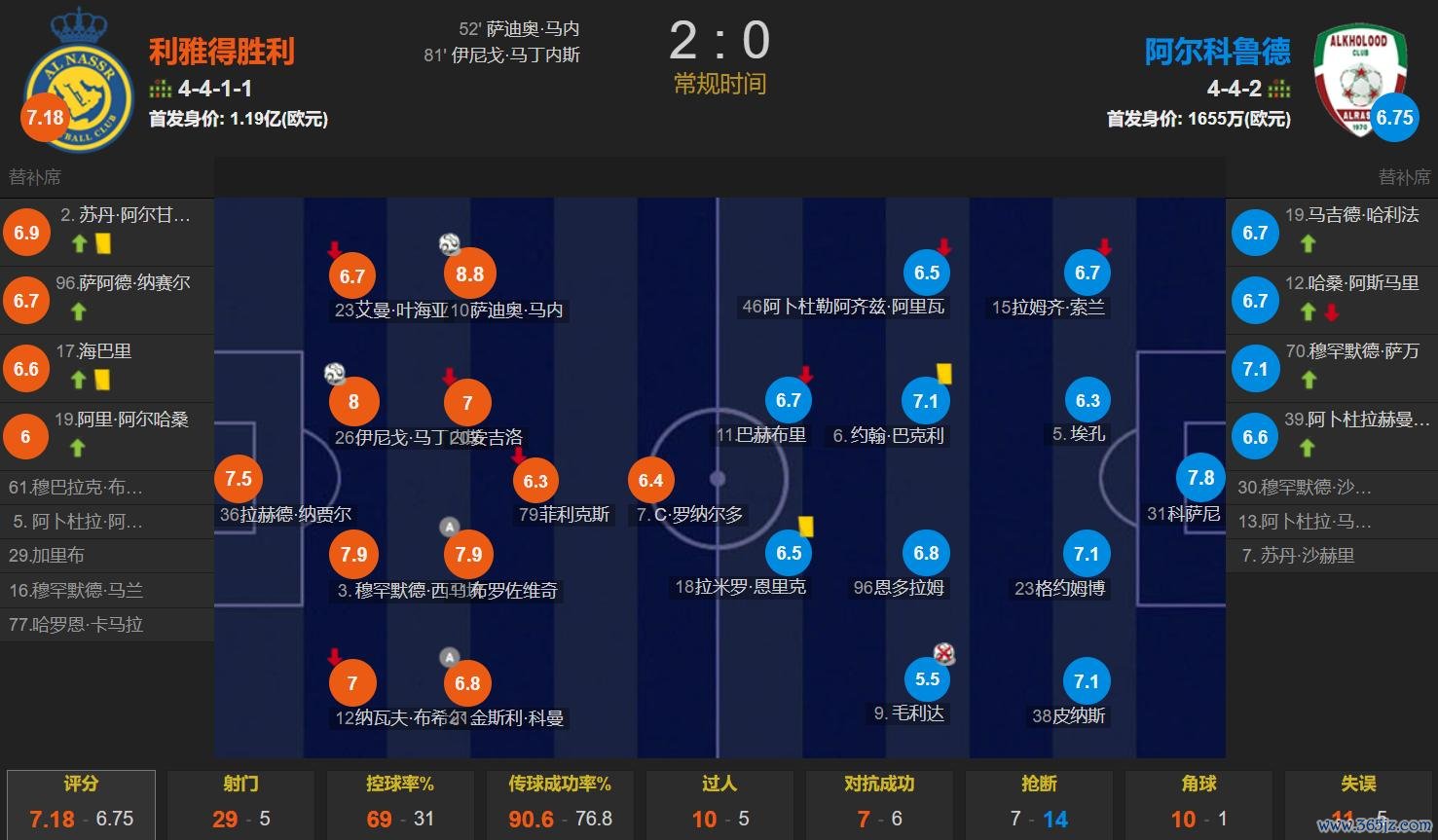 利雅得顺利vs拉斯不朽,前者首发身价1.19亿欧元,后者首发身价1655万欧元,出入如故很大的。此役利雅得顺利主力尽出,C罗、菲利克斯、马内、布罗佐维奇、科曼、西马坎、伊尼戈前五大联赛球星统共首发。