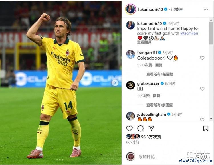 莫德里奇社媒晒出比赛相片,并写说念:“在主场赢得蹙迫告成!很雀跃攻入我在米兰的首粒进球的。”