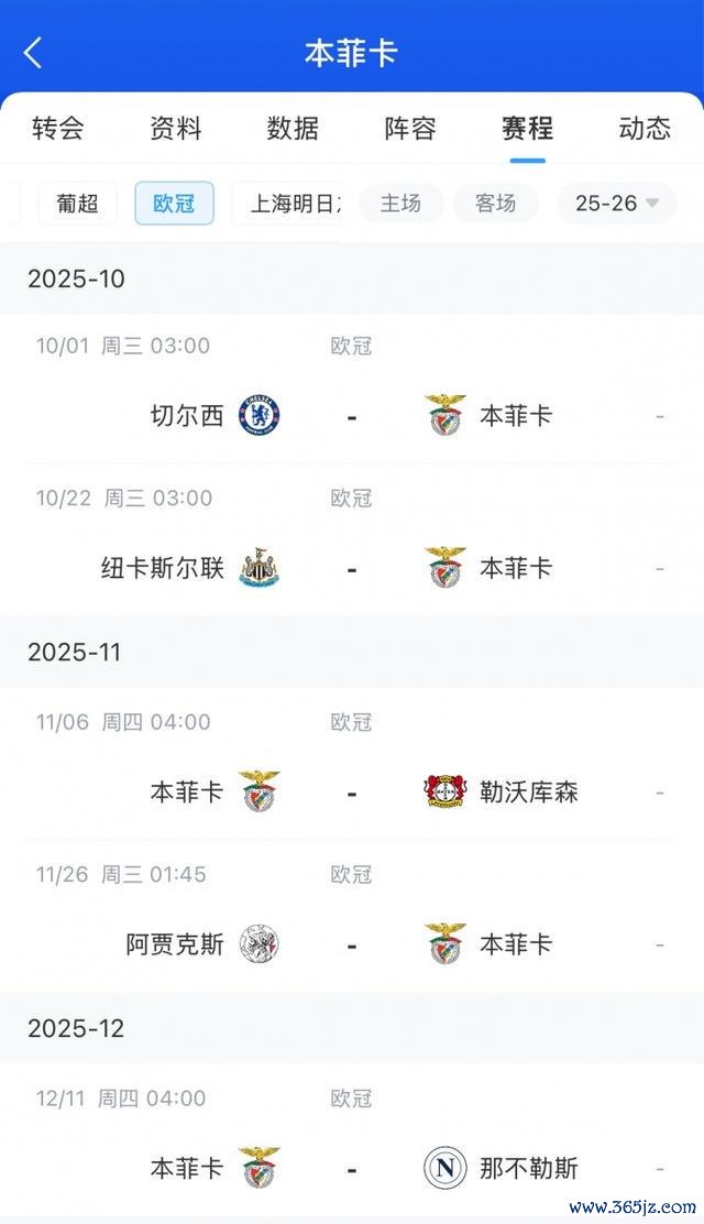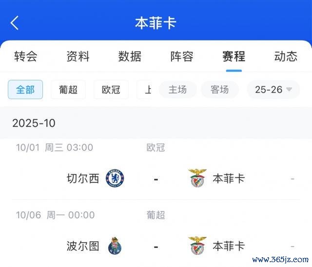 本菲卡首轮欧冠遭受阿塞拜疆球队卡拉巴赫逆转。接下来本菲卡在欧冠会靠近切尔西(穆帅前东家)、纽卡、勒沃库森、阿贾克斯、那不勒斯、尤文、皇马(穆帅前东家)。