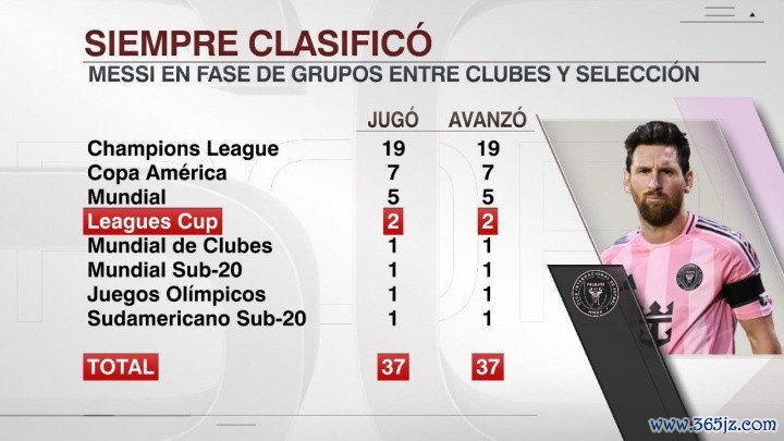 铁律持续! 随迈阿密外洋出线, 梅西糊口37次小组赛一谈晋级