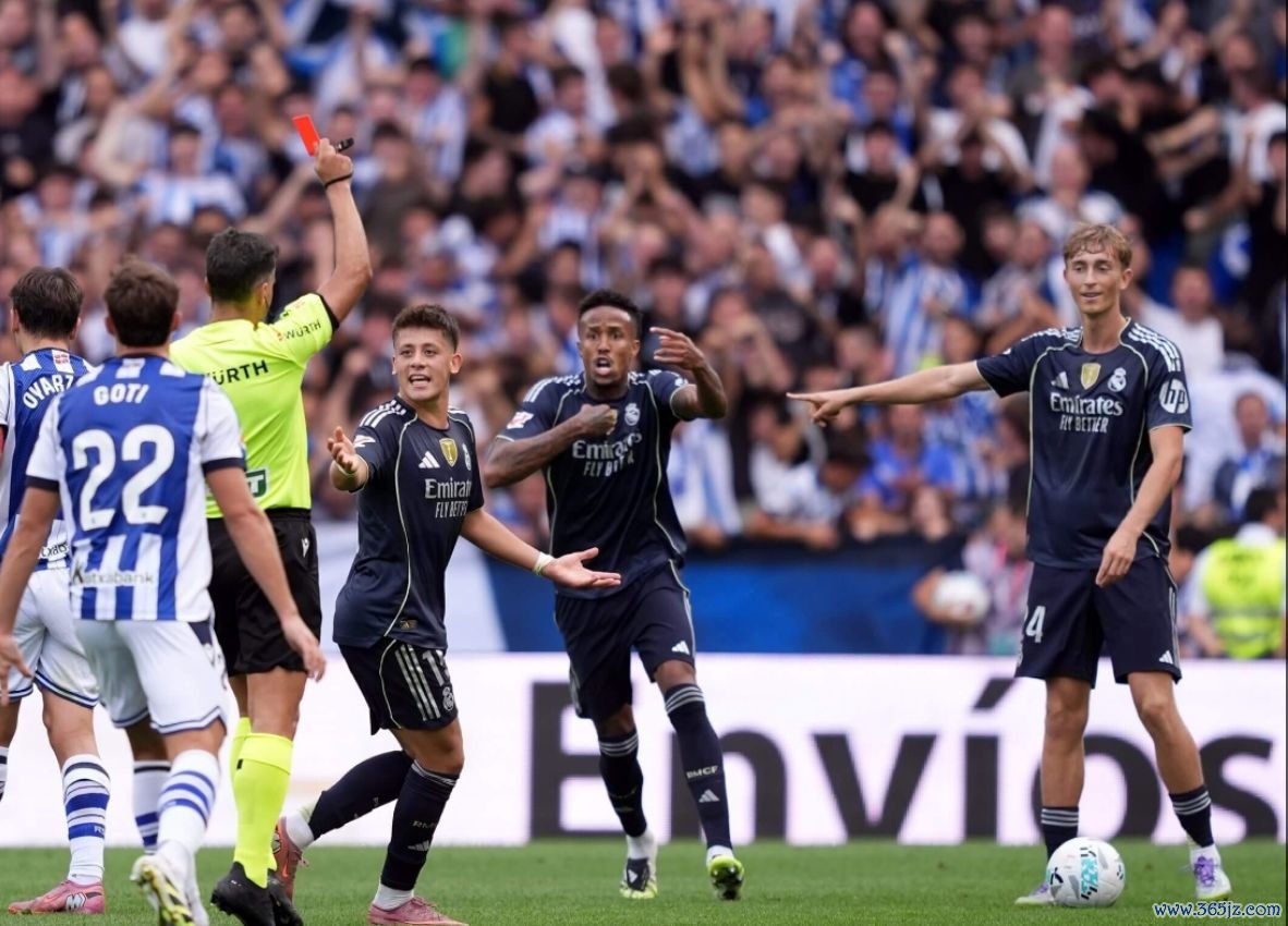 西甲第4轮,皇马客场挑战皇社。上半场,皇社打出反击,赫伊森在中线隔邻拉倒了对方的反击球员。裁判马上向其出示红牌,将其罚下。赫伊森暗意皇马有2名后卫在后场,但裁判不听。