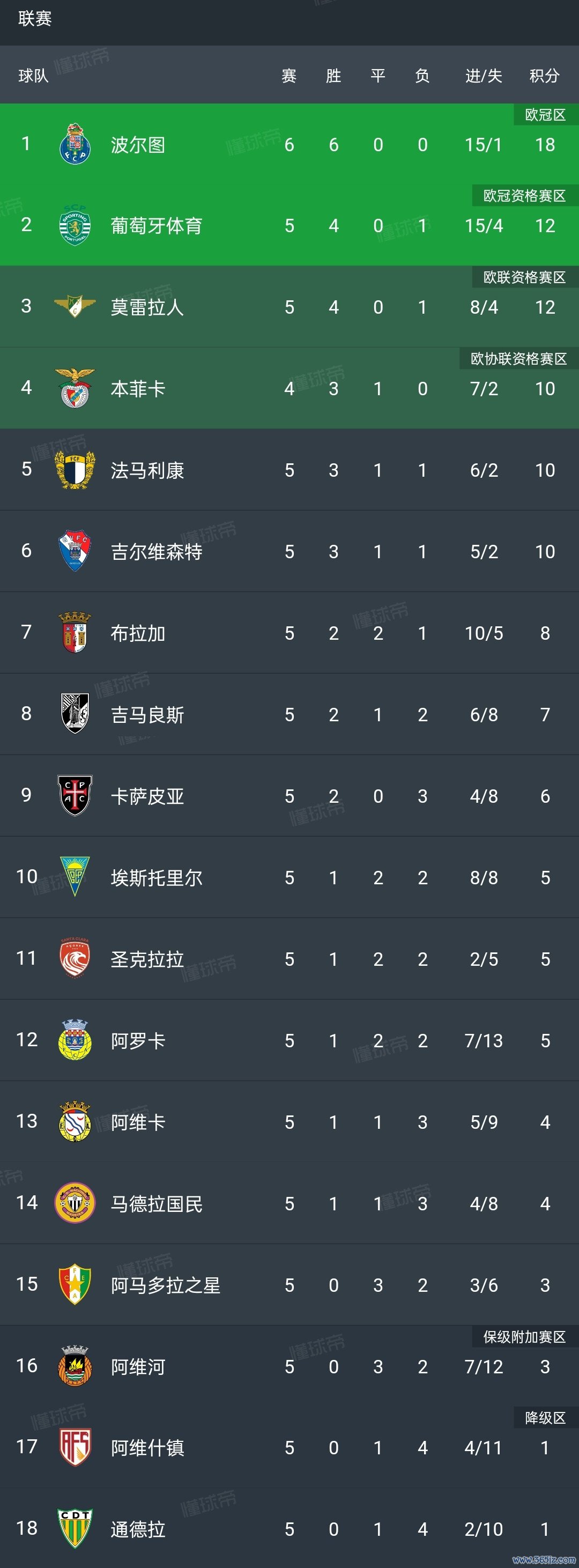 最终,凭借贝加的2传1射,波尔图豪取六连胜,积18分领跑葡超积分榜。