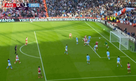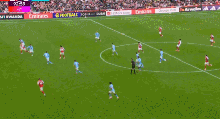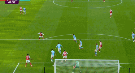 补时第2分钟,阿森纳快速反击,马丁内利反越位突入禁区挑射破门,为阿森纳扳平比分,这是多纳鲁马曼城糊口的首个丢球。