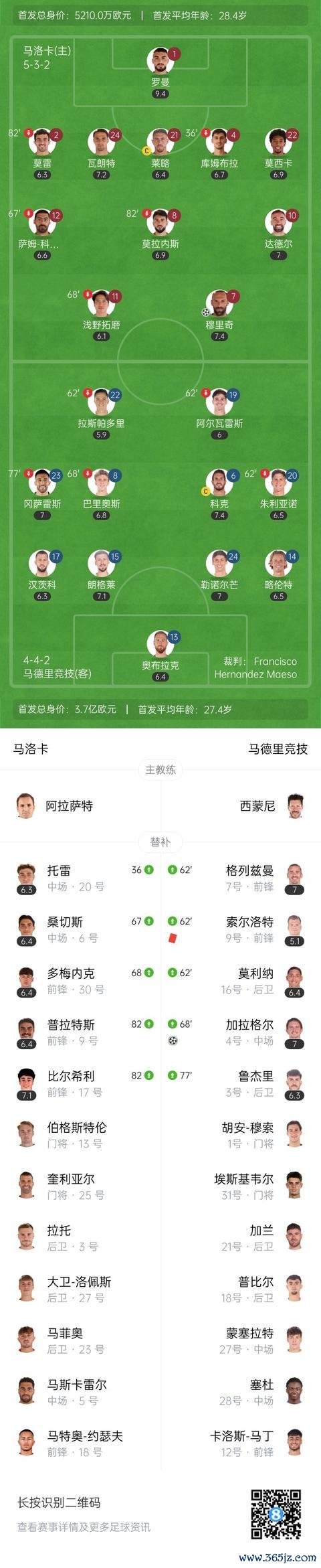 第79分钟,马竞反击契机,莫利纳上抢一脚打穿防地,加快插上禁区右侧扣门被扑,加拉格尔跟进补射入彀,十东谈主马竞1-0逾越↓