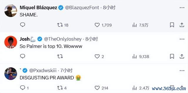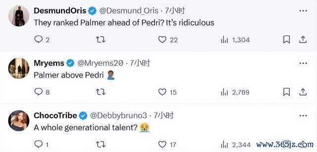 球迷的主流不雅点:“简直见笑,乖张!帕尔默都排行第10,佩德里尽然还不如帕尔默?”