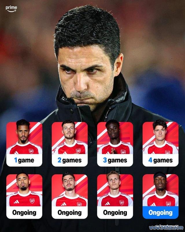 据悉,马杜埃凯瞻望将至少缺席11场阿森纳比赛(若球队在联赛杯接续前进,场次可能更多)。这段赛程包括: