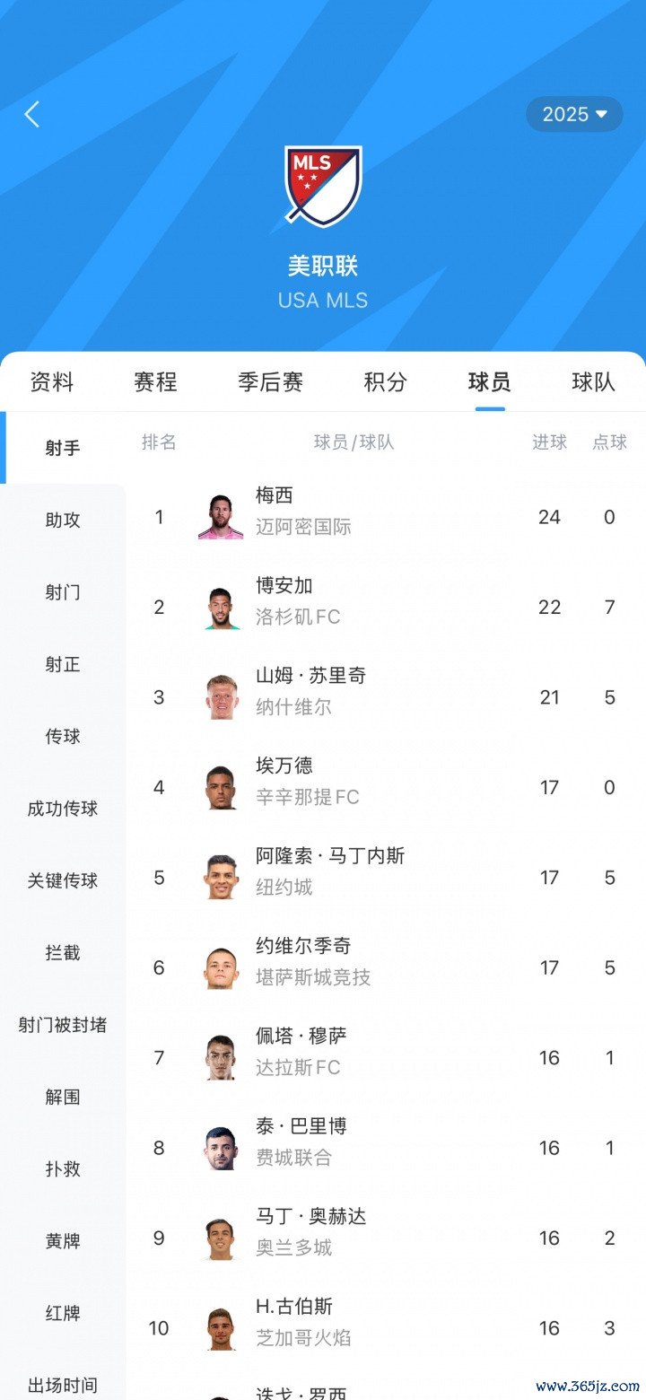梅西 23 场 24 球零封点球领跑好意思职联弓手榜