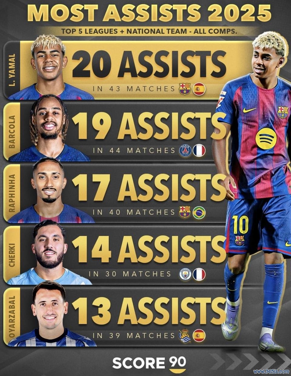 亚马尔:助攻已接近场均0.5,若再叠进球,年底有望冲总孝顺前三;