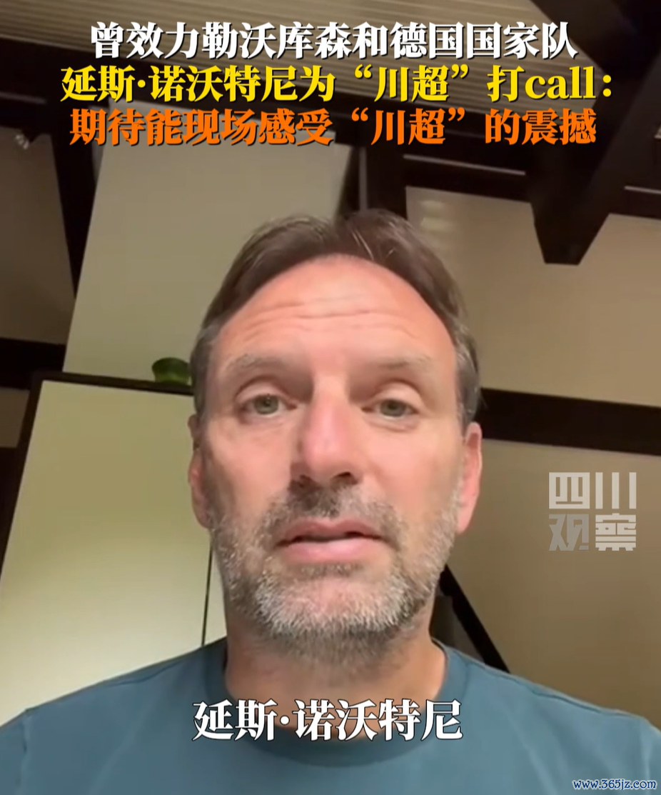 9月25日,延斯·诺沃特尼送来暖心道喜:“四川的一又友们,我是延斯·诺沃特尼!别传‘川超’火热开赛,必须来送个道喜!在我印象里,四川但是个矿藏场合——萌萌的大熊猫、火辣的好意思食、醇香的茶叶,当今还要加上超燃的足球氛围!”