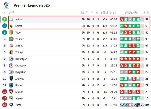 在哈萨克斯坦国内联赛,阿斯塔纳和阿拉木图凯拉特的竞争也黑白常热烈。本赛季踢完24轮后(全年有26轮联赛),阿斯塔纳拿到53分领跑积分榜。阿拉木图凯拉特少赛一场拿到52分,要是可以赢下剩余的3场比赛,他们将会卫冕哈萨克斯坦国内联赛冠军。