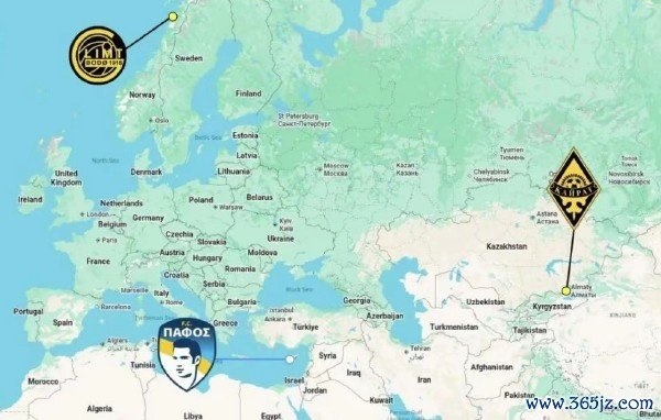 本届欧冠附加赛上,来自哈萨克斯坦的阿拉木图凯拉特、挪威的博德耀眼和塞浦路斯的帕福斯辞别淘汰了苏超凯尔特东谈主、奥地利的格拉茨风暴和塞尔维亚的贝尔格莱德红星晋级正赛。这三支球队,偶合来自欧冠领土的最东面、北面和南面。在打完皇马后,阿拉木图凯拉特和帕福斯会有一场直面临话,让塞浦路斯球迷体验一把名山大川的驰驱之苦。