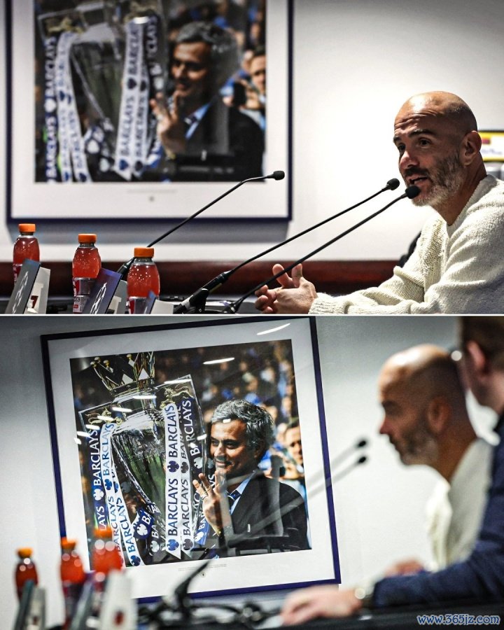 外传回家!马雷斯卡发布会现场,墙上的像片恰是穆帅英超第3冠