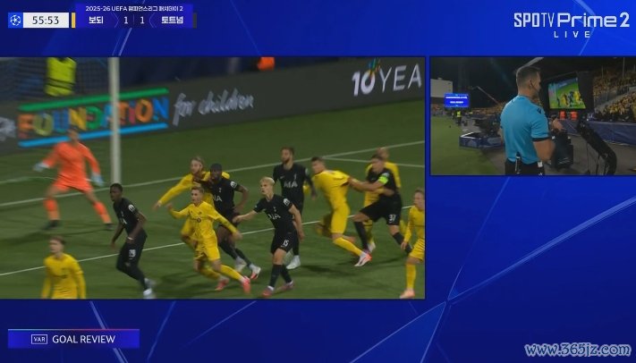 比赛第54分钟,约翰逊本坦库尔闪电扳平,VAR介入判罚犯规在先,进球无效。博德忽闪仍然1-0跨越热刺!