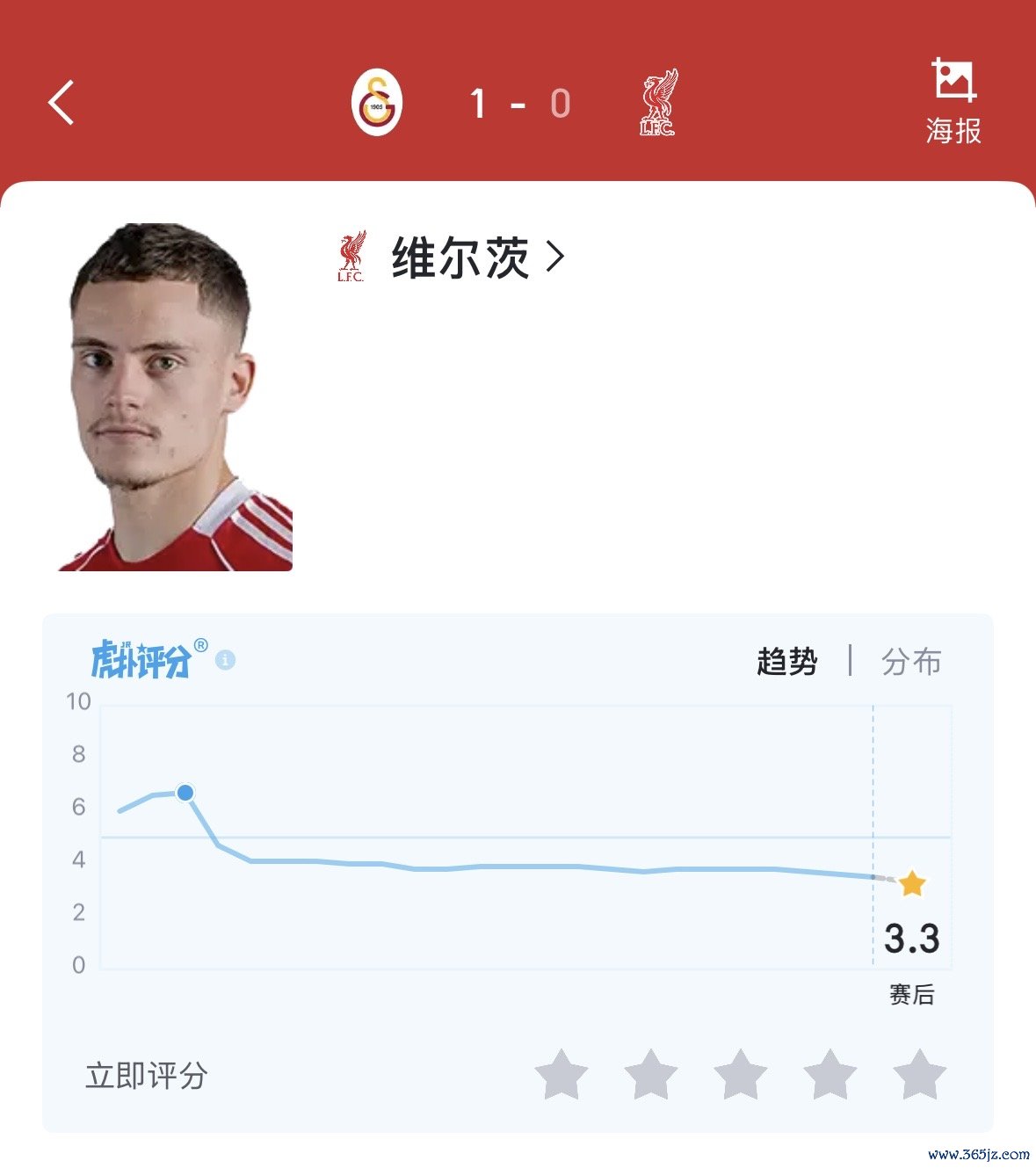 欧冠联赛第二轮,利物浦客场0-1不低加拉塔萨雷,各项赛事遇到两连败。本场比赛维尔茨发达平平,再度激发烧议。点击给维尔茨的发达打分>>