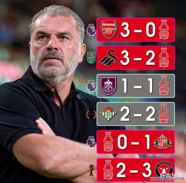出任诺丁汉丛林主帅只是24天,波斯特科格鲁带队踢了6场比赛,后果是2平4负未曾胜绩: