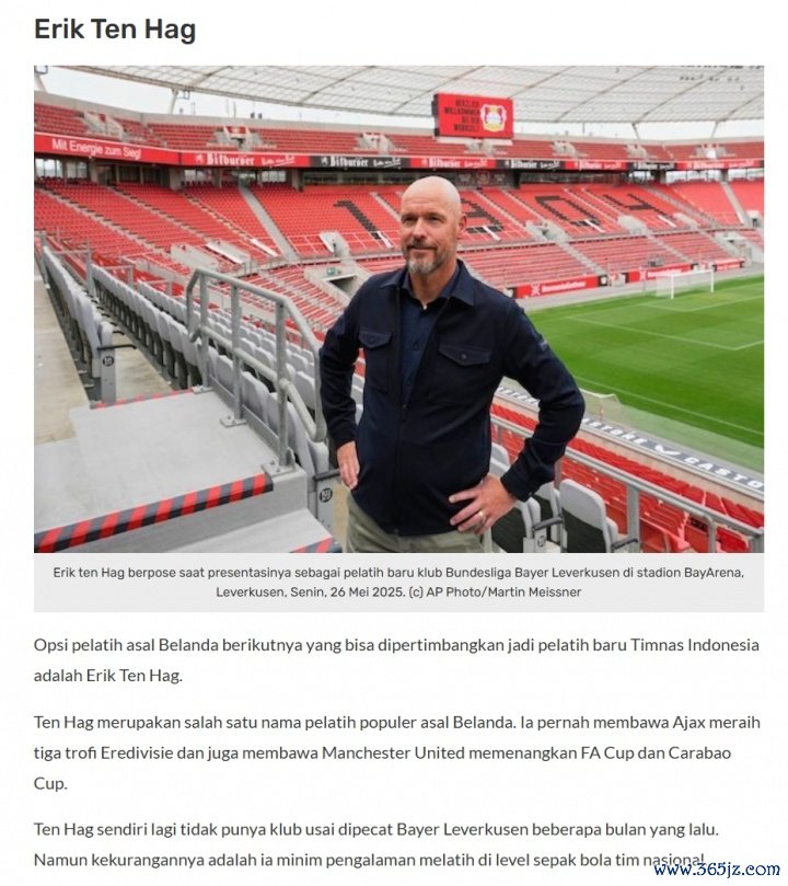下一位可探求成为印尼国度队新帅的荷兰籍教师东谈主选是埃里克·滕哈赫。