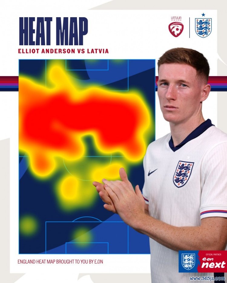 此役埃利奥特-安德森踢满全场,匡助英格兰取胜。英格兰队社媒晒出埃利奥特-安德森本场比赛的热区图片,这位中场球员的诡秘范畴极大。