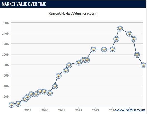 10月17日讯 本日德转更新英超球员身价,25岁福登身价跌出亿元,现在为8000万欧,对比1年前1.5亿欧的身价依然腰斩。