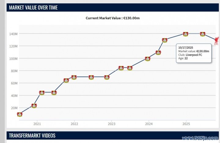 10月17日讯 德国转会阛阓更新英超联赛球员身价,利物浦新援维尔茨身价下落1000万,跌至1.3亿欧元!