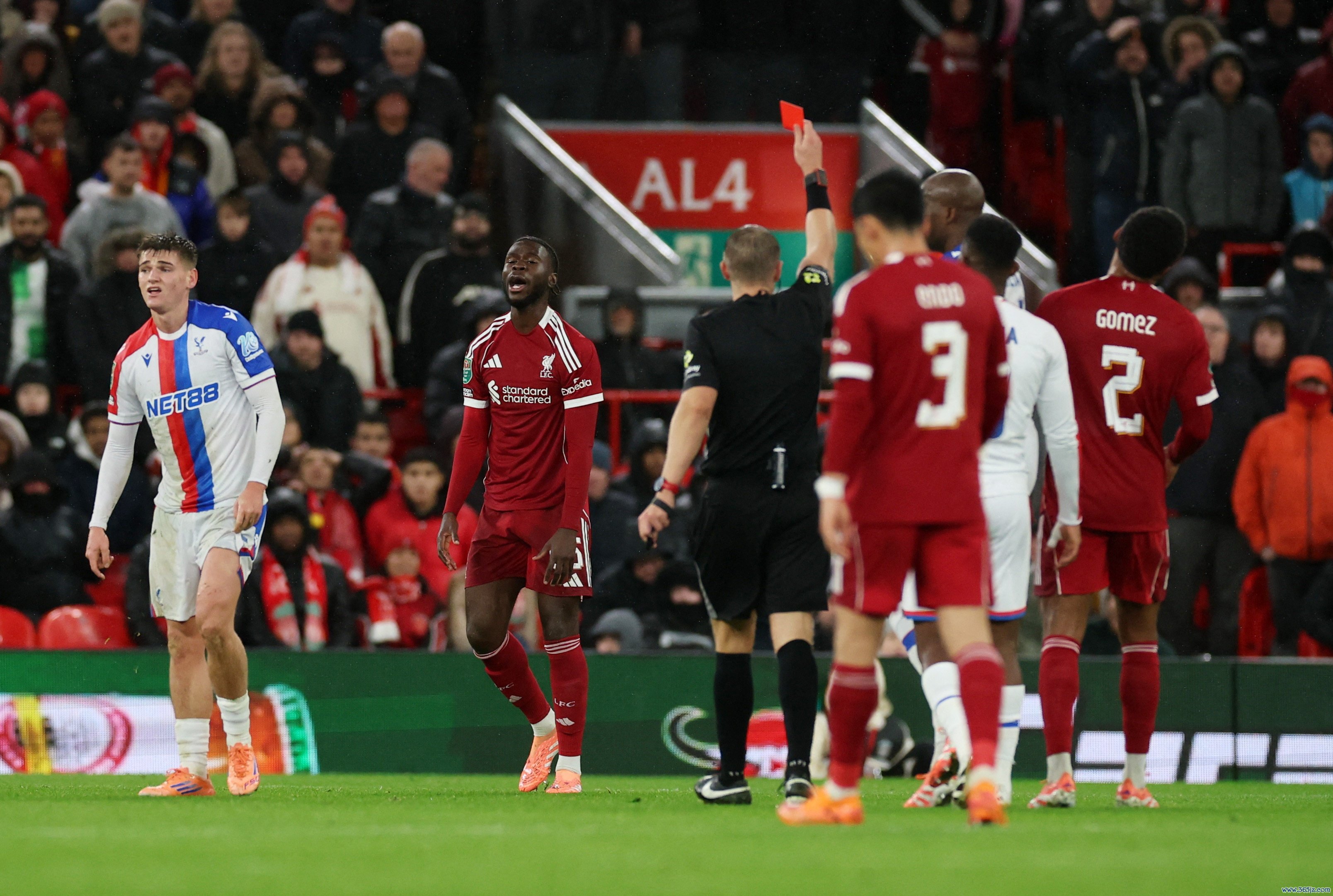 利物浦后卫阿玛拉-纳洛在周三晚间对阵水晶宫的比赛中替补登场仅12分钟后便领到红牌——至此他代表俱乐部仅有的两次出场均际遇结束。