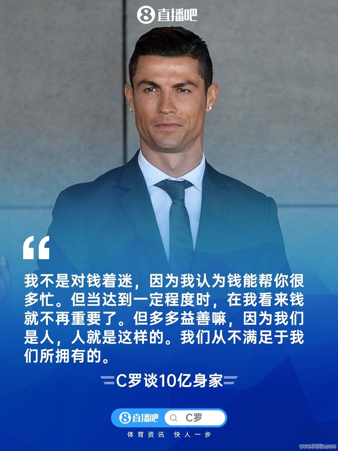 C罗:永诀,永诀。我好多年前即是亿万大亨了。