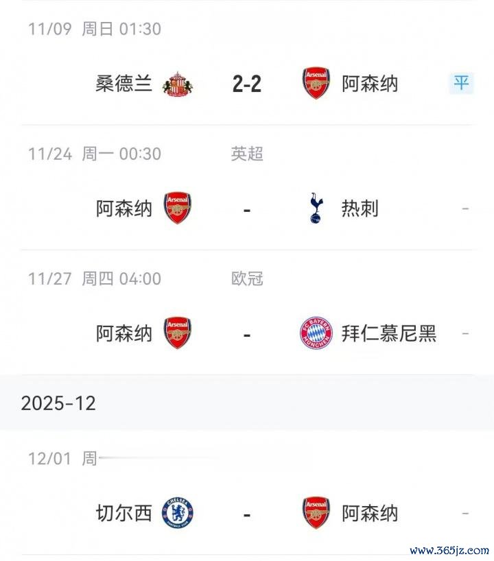 被桑德兰绝平! 阿森纳各赛事10连胜拆伙, 后3场踢热刺拜仁切尔西
