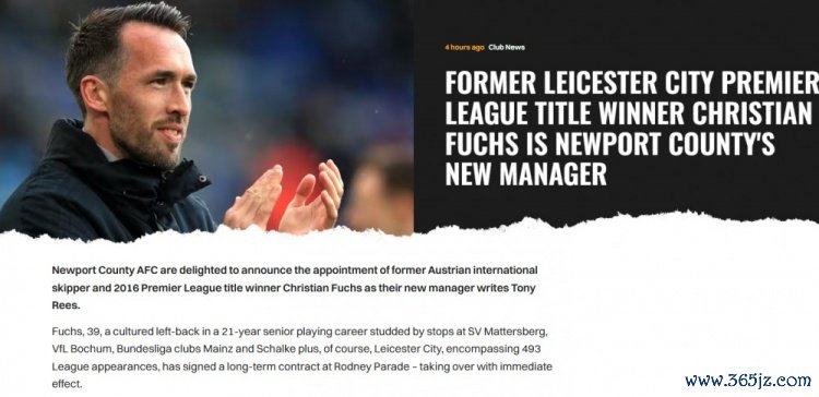 11月21日讯 纽波特郡官方告示,任命39岁的前莱斯特城英超冠军球员克里斯蒂安·富克斯为新任主教练。