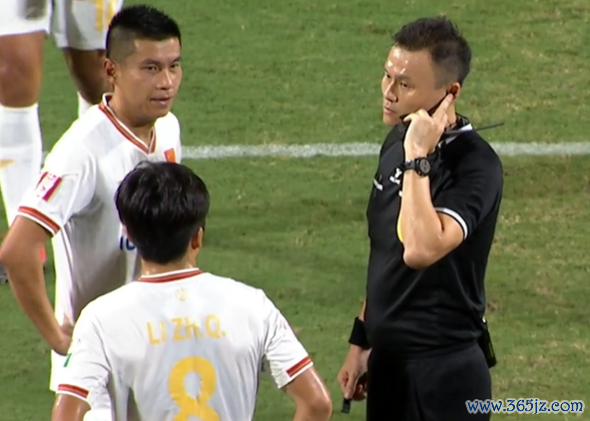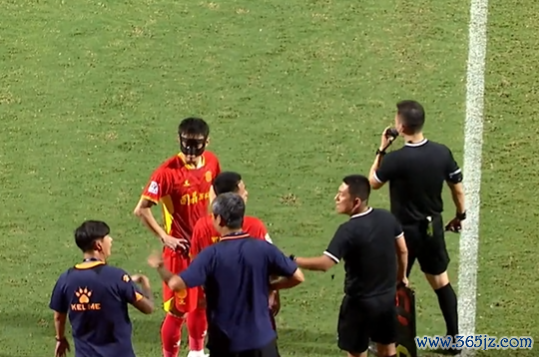 之后主裁判张杨帆吹停比赛,并准备稽查VAR说明刚才杨镜帆禁区内被放倒是否存在点球事件。