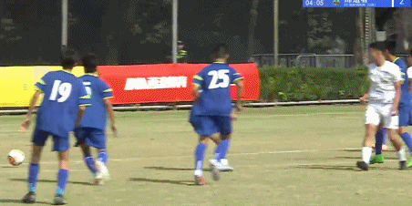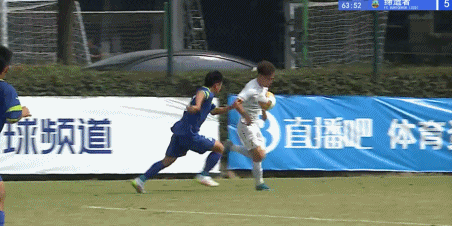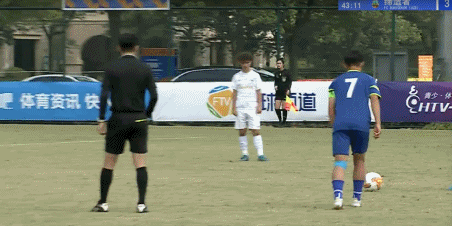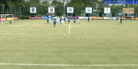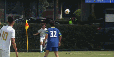 第43分钟,郑哲瀚主罚随性球右脚劲射击中顶网。