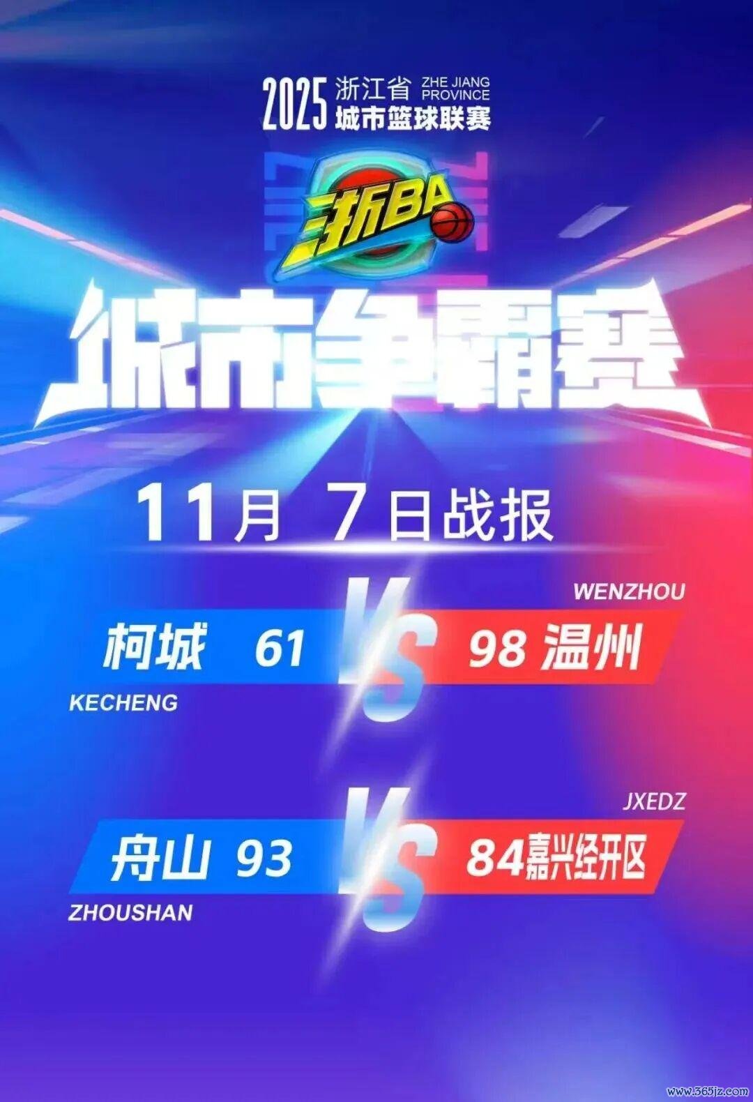 11月7日晚,“浙BA”城市争霸赛A组第十三轮比赛继续,温州队客场对阵柯城队、舟山队主场对阵嘉兴经开区队。最终,温州保捏不败战绩,斩获十二连胜,舟山也愈战愈勇,拿下四连胜。