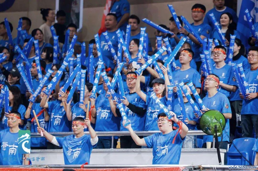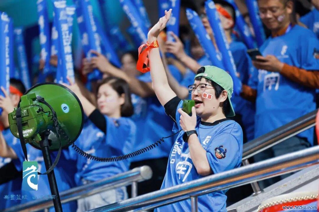 苍南拉拉队身着蓝色应援服,手中挥舞着恭维荧光棒,脸上还贴着球队专属贴纸,尽是芳华活力与奋斗斗志。每当苍南队进球得分,“苍南必胜!”的大喊声穿透赛场,化作苍南队球员们眼下的能源,更让客场赛场满溢着来自苍南的和缓与力量,成为赛场上一谈亮眼又热血的征象线。